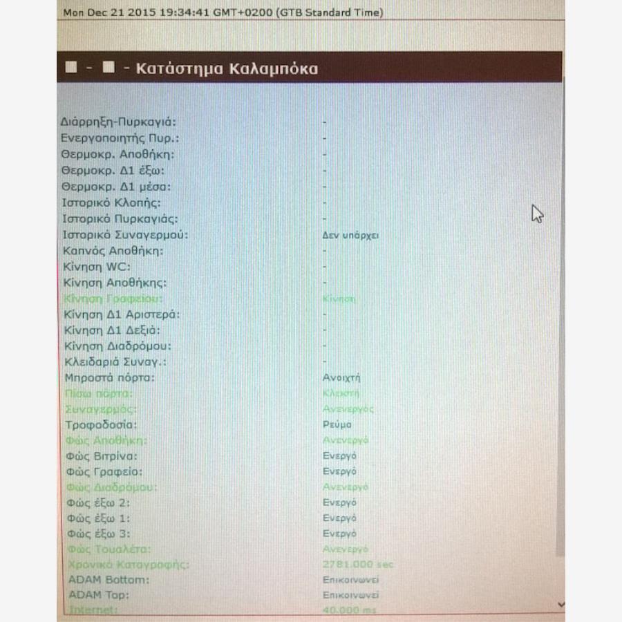 Εγκατάσταση συστήματος SCADA σε συνδυασμό με φωτισμό, συναγερμό και πυραφάλεια καταστήματος. Ελέγχεται πλήρως αυτόματα βάσει παρουσίας ή χρόνου ή χειροκίνητα, τοπικά ή απομακρυσμένα ο εσωτερικός φωτισμός καθώς και οι λειτουργίες του συναγερμού και της πυραφάλειας. Ταυτόχρονα γίνεται επιβεβαίωση των συμβάντων συναγερμού με χρήση καμερών. Ειδοποίηση προσωπικού για συμβάντα, παρακολούθηση και χειρισμοί μέσω διαδικτύου.